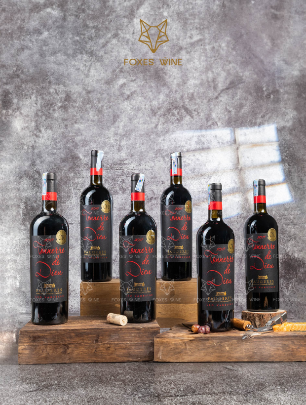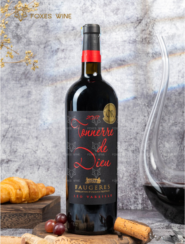 Leo Vareille Tonnes de Dieu Faugeres là một chai vang mang hương vị mạnh mẽ, đậm đà lôi cuốn, làm từ nho Grenache, Syrah và Mourvèdre. Chai vang này đã nhiều lần được vinh danh trong các giải thưởng quốc tế.