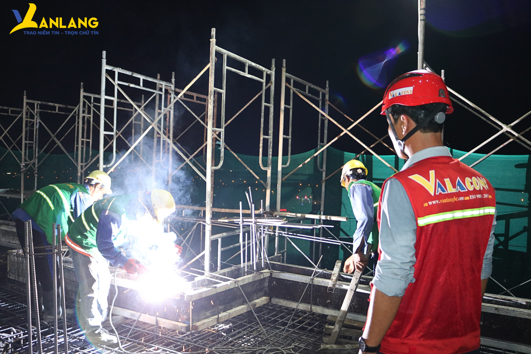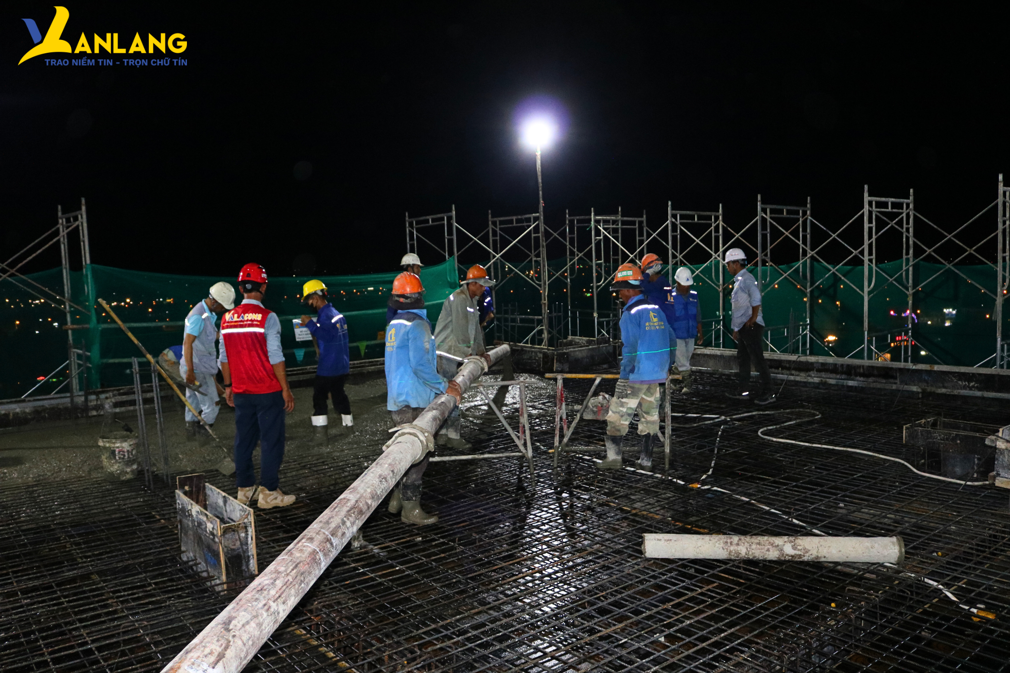 Chúng tôi đang chạy đua cùng thời gian không chỉ để bảo đảm tiến độ mà còn để giữ trọn lời hứa với khách hàng và đối tác. Sau lễ cất nóc thành công vào buổi sáng, đội ngũ kỹ sư và công nhân Văn Lang vẫn miệt mài đổ bê tông, thi công xuyên đêm, âm thầm như những ánh sao nhưng đang thắp sáng mạnh mẽ niềm tin về một công trình hoàn hảo, được bàn giao đúng hẹn.